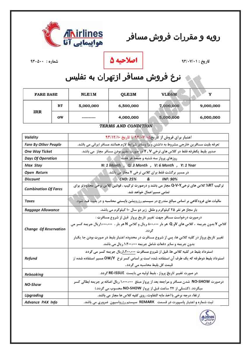نرخ فروش مسافر